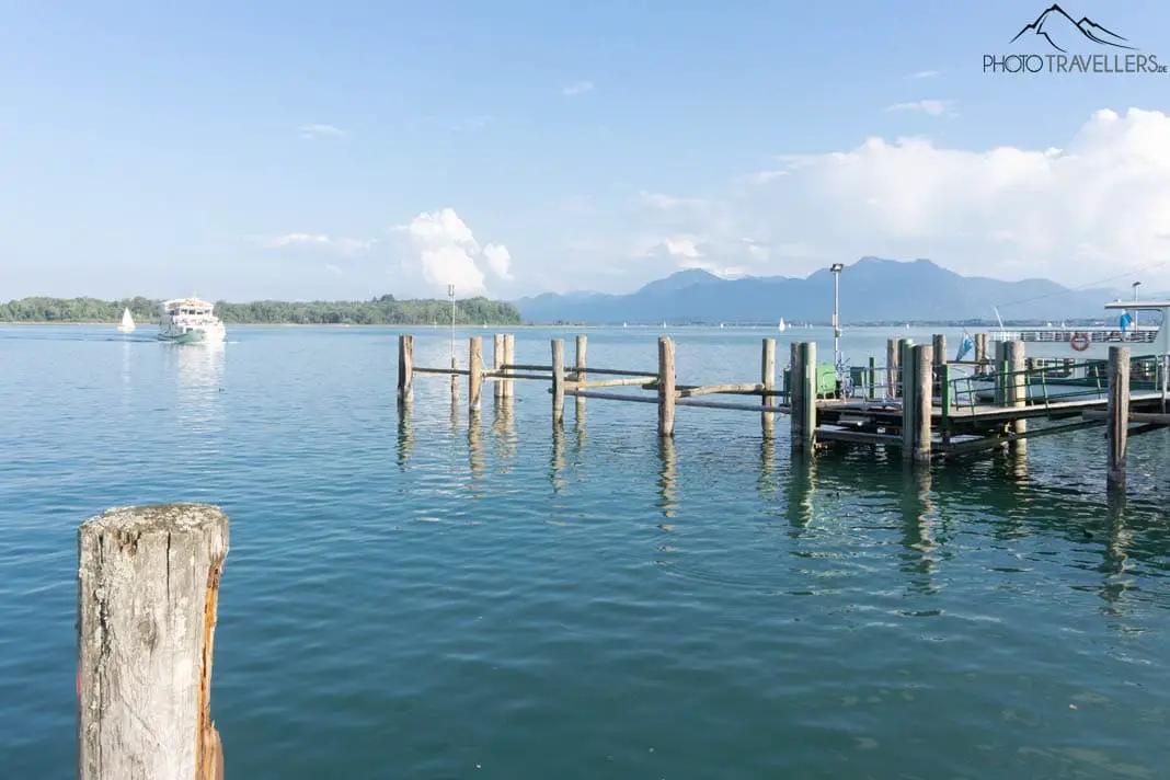 Lake Chiemsee is nestled in a fairytale setting. From the northern shore of the huge body of water you can see the Alps in the distance.