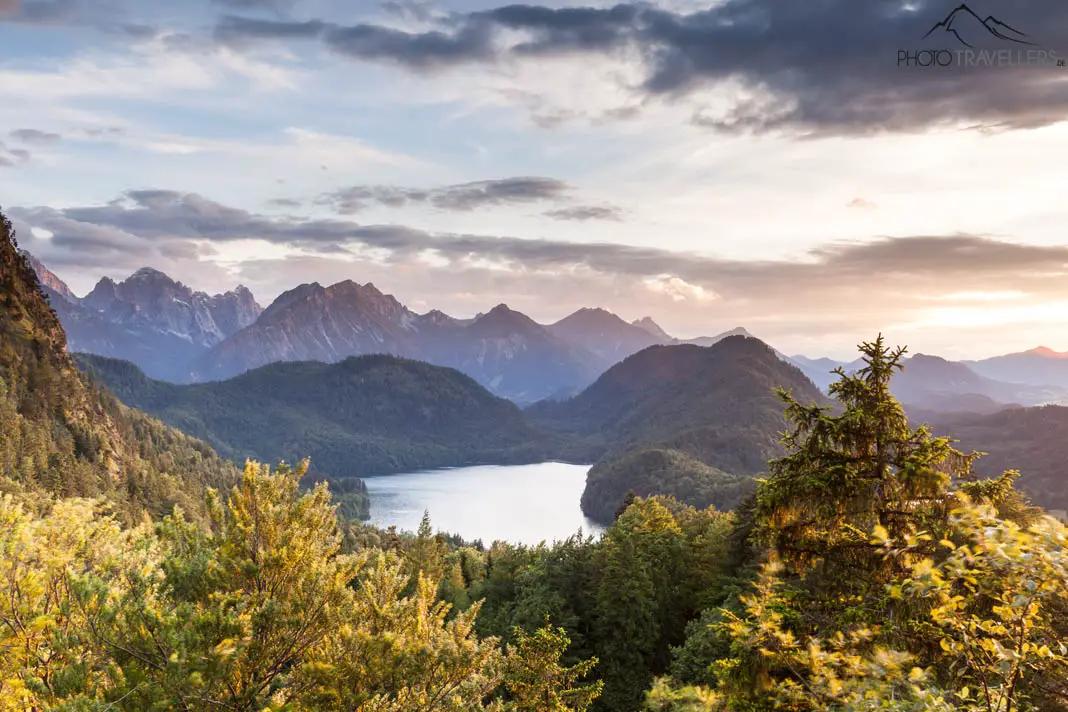 The Alpsee (not to be confused with the Großer Alpsee in Immenstadt, about 60 kilometres away) near Füssen in the Allgäu opens up a breathtaking view of the world-famous fairytale castle of Neuschwanstein. But even without the imposing castle, which served Walt Disney as a model for his Disney castles, the crystal-clear Alpine lake is a romantic destination.