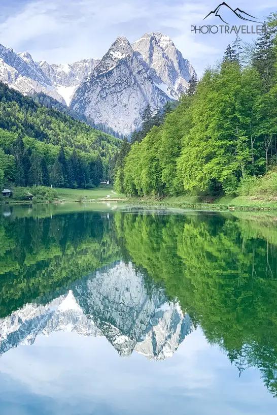 Lake Eibsee near Garmisch-Partenkirchen at the foot of the Zugspitze is also called the Bavarian Caribbean because of its turquoise blue water and is also often compared to the Maldives.