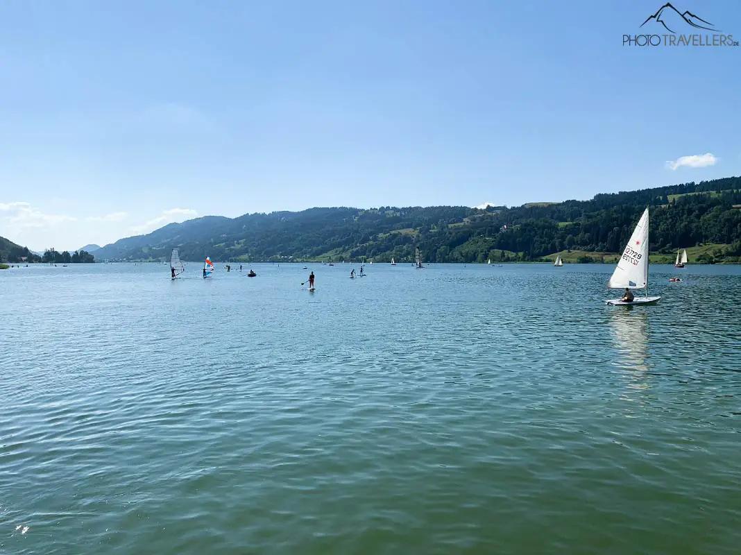 Sailing, surfing, kiting - all this is possible on Lake Forggensee.
